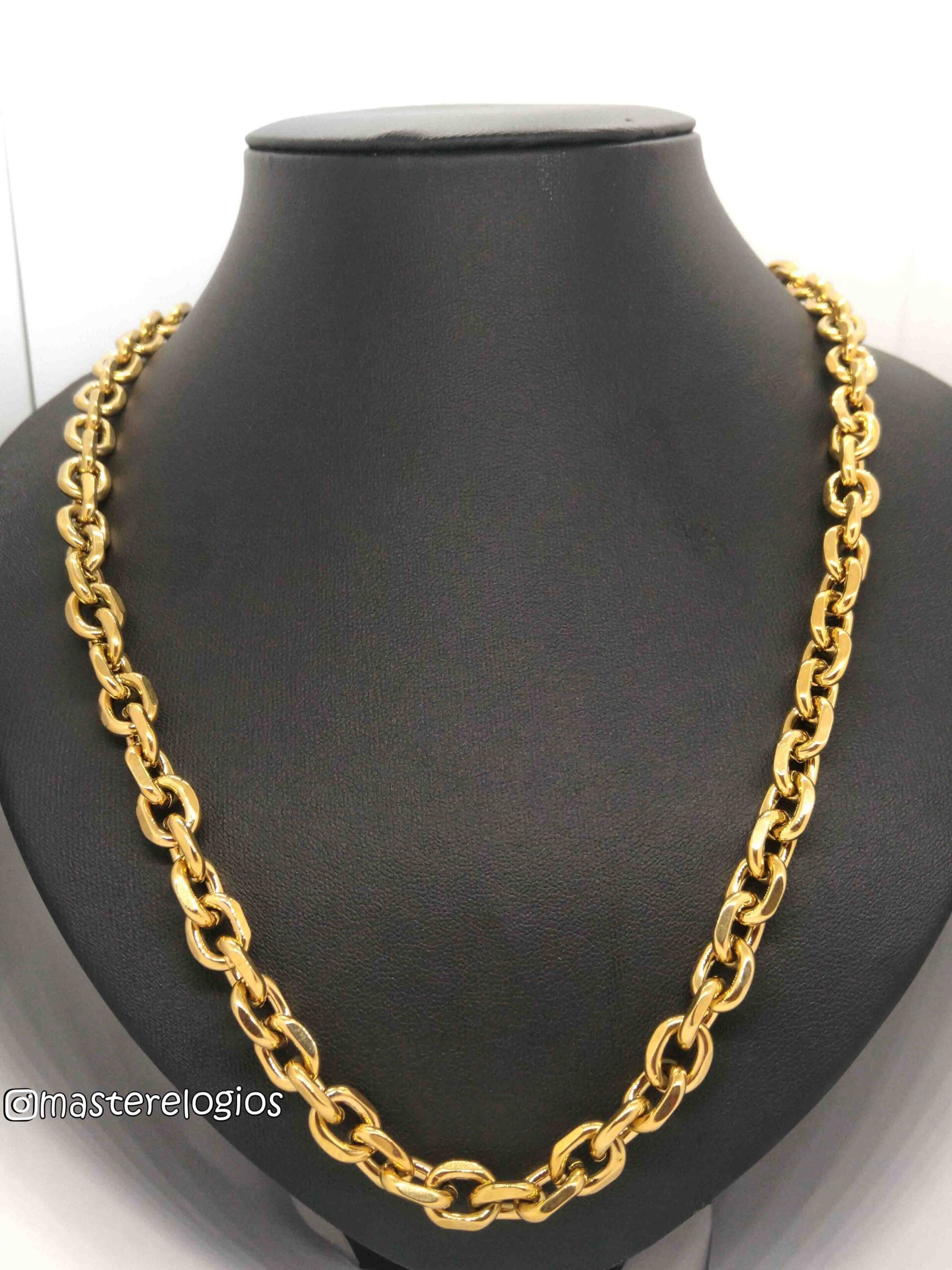 Corrente Cadeado laminada 10mm redonda banhada a 10 milesimos de ouro 18k 70cm