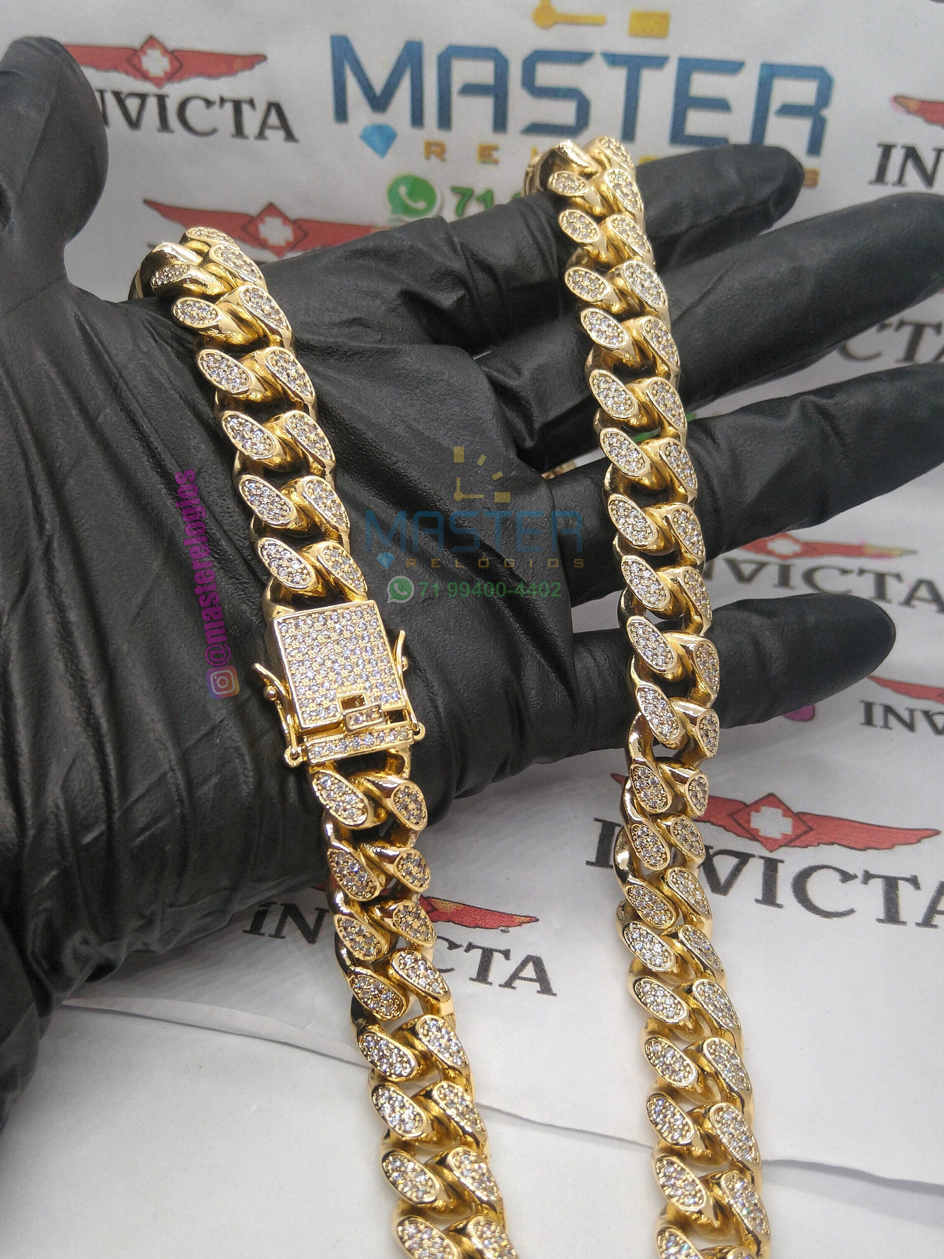 Corrente Cravejada 250g banhada a 10 milesimos de ouro 18k 60cm